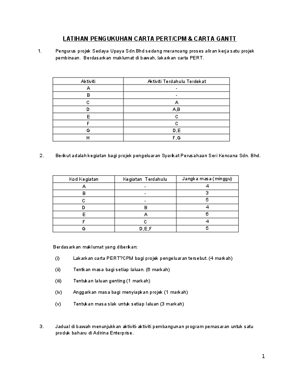 Contoh Soalan Analisis Laluan Kritikal