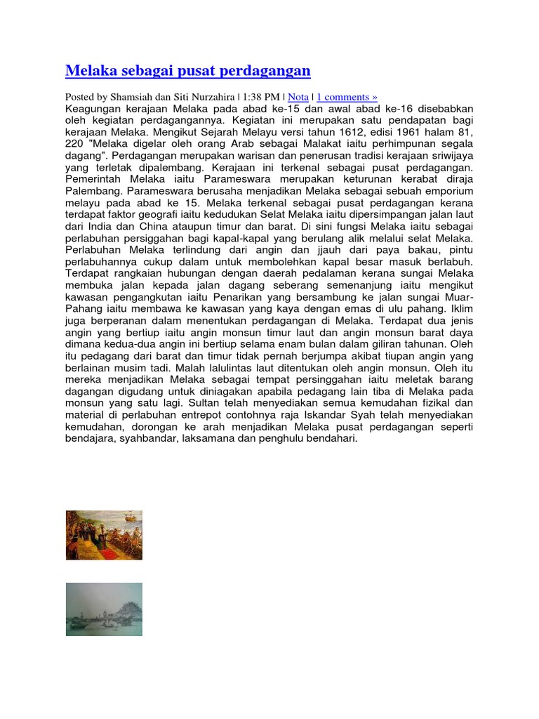 Gambar laluan penting pedagangan melaka. Dr Awang tengah menjawab soalan para peserta sempena Seminar Antarabangsa Cheng Ho semalam. Bincangkan Faktor-faktor Kemunculan Melaka Sebagai Pusat Perdagangan Di Asia Tenggara DiAlam Melayu Pada Abad Ke 15 Maeshi Pengenalan. Dengan kedudukan melaka yang menguasai seluruh kawasan laluan perdagangan di selat melaka selain menjadi kuasa politik ia telah.